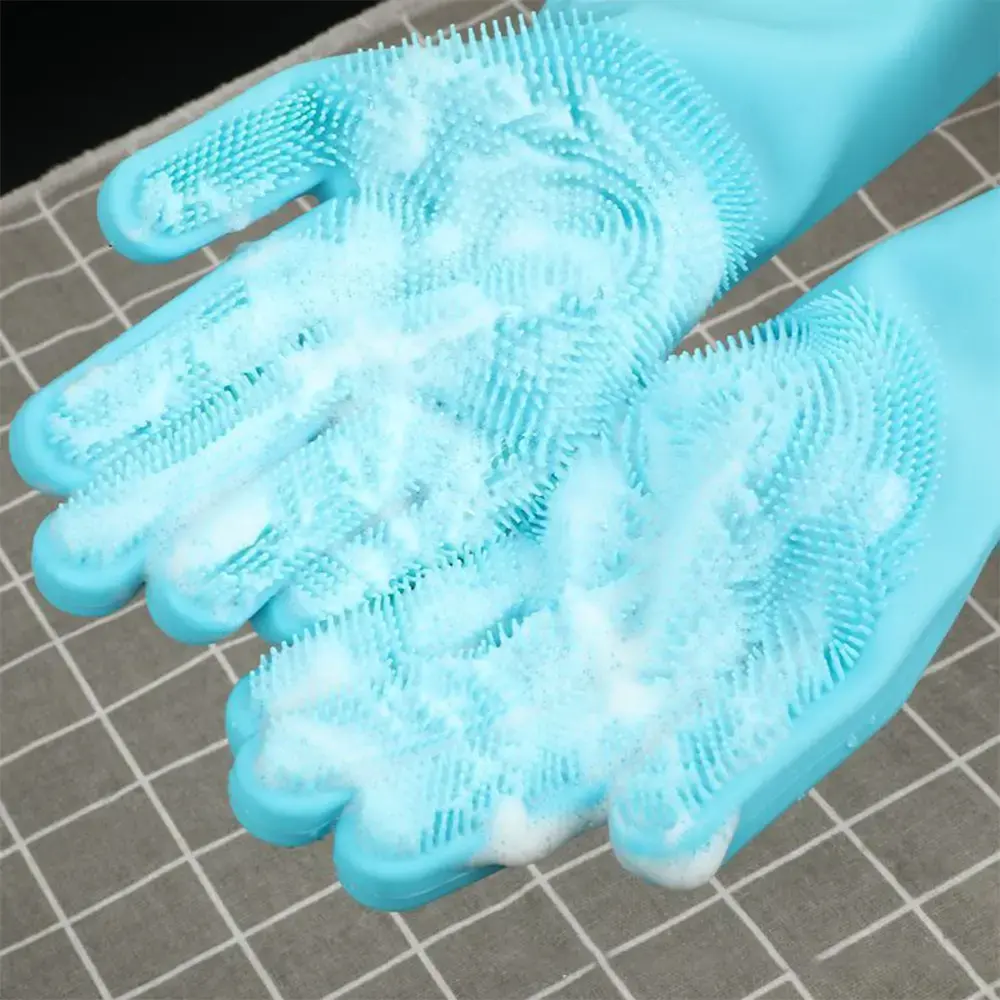 Reusable silicone gloves designed for multi-purpose cleaning tasks such as dishwashing, pet care, and car washing. Made of durable, heat-resistant silicone, they ensure comfort and eco-friendly cleaning. Suitable for year-round use across various seasons and ideal for household or commercial buyers.